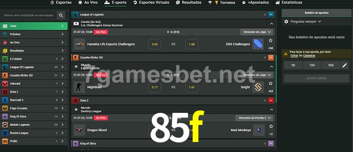 O 85f oferece uma grande seleção de opções de apostas em e-sports com probabilidades competitivas